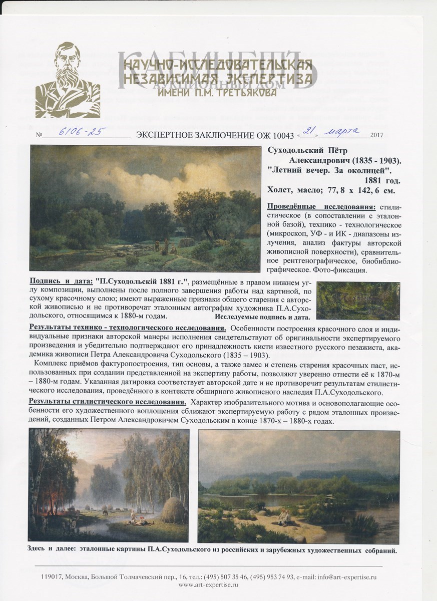 Экспертное заключение НИНЭ им. Третьякова от 21.03.2017 г.