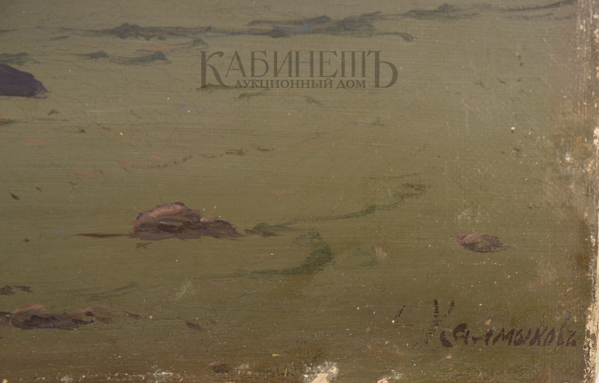 Калмыков Григорий Одиссеевич (1873–1942) – живописец, график, пейзажист. Занимался у И.К. Айвазовского в Феодосии (1889), учился в Одесской рисовальной школе (окончил 1893) у К.К. Костанди и в ИАХ (1893) у А.И. Куинджи. В 1895 г. был удостоен звания классного художника 3-й степени, в 1897 г. — звания художника. С 1892 г. участник выставок ИАХ, Общества им. А.И. Куинджи. В 1900 г. состоялась персональная выставка в Петербурге. Работы представлены в Государственном музее истории Санкт-Петербурга и др.