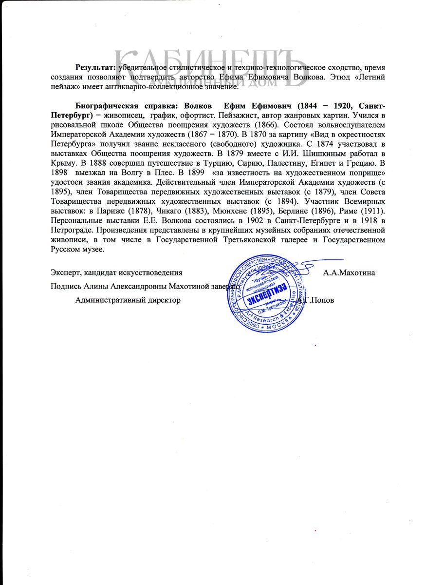 Волков Ефим Ефимович (1844–1920) – живописец, график, пейзажист. С 1866 г. учился в Рисовальной школе ОПХ. В 1867–1870 гг. вольнослушатель ИАХ. В 1870 г. удостоен звания неклассного художника. С 1874 г. участник ежегодных выставок ОПХ. С 1879 г. член ТПХВ. С 1895 г. – действительный член ИАХ. В 1899 г. был удостоен звания академика. Участник всемирных выставок: Париж (1878), Чикаго (1883), Мюнхен (1895, 1909 и 1913), Берлин (1896), Рим (1911) и др. Персональные выставки в 1902 и 1918 гг. в Санкт-Петербурге. Работы хранятся в крупнейших музеях России (ГТГ, ГРМ и др.).