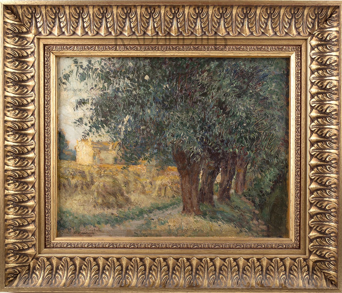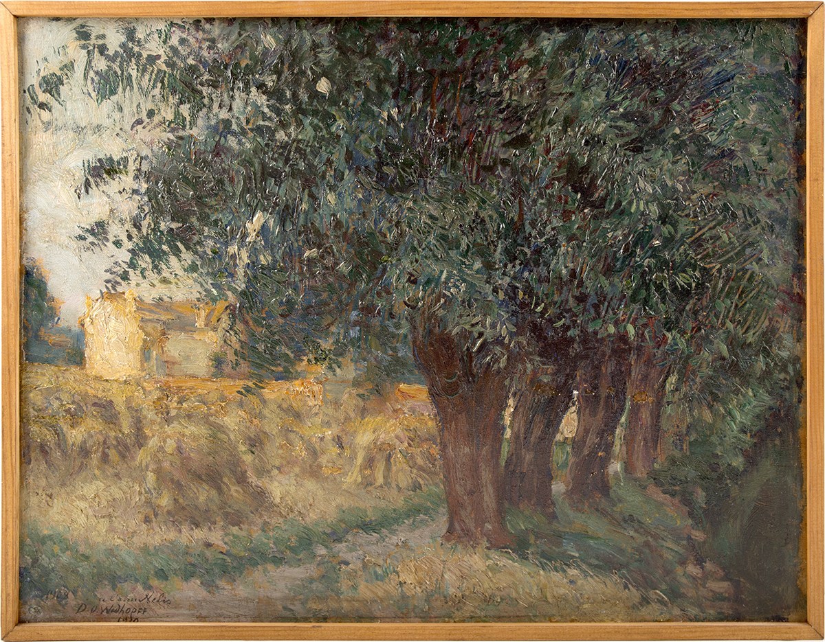 Слева внизу дата «1908» и плохо читаемая надпись. Ниже подпись и дата: «D.O. Widhopff/1910».