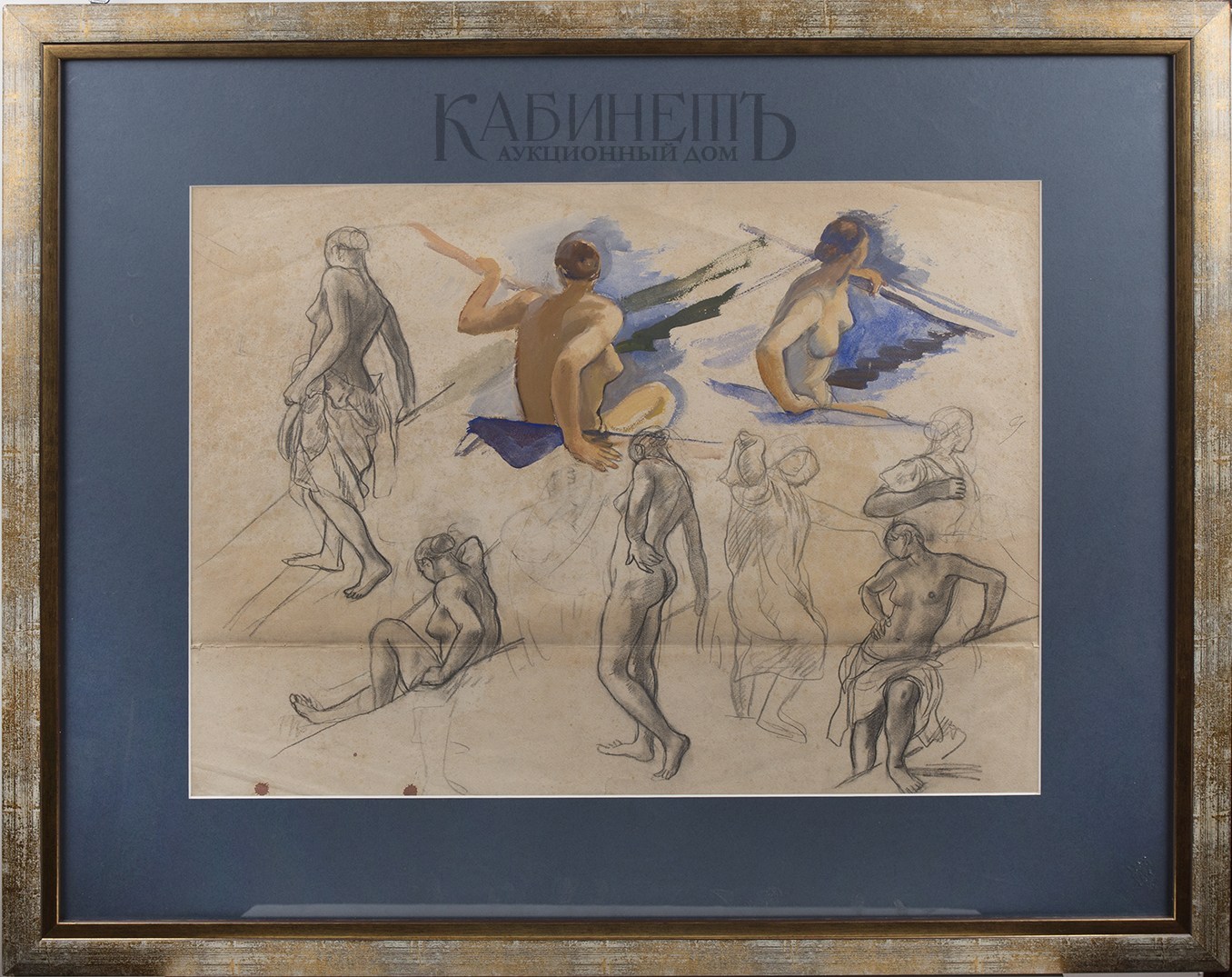 На обороте карандашные и акварельные эскизы обнаженной женской фигуры.