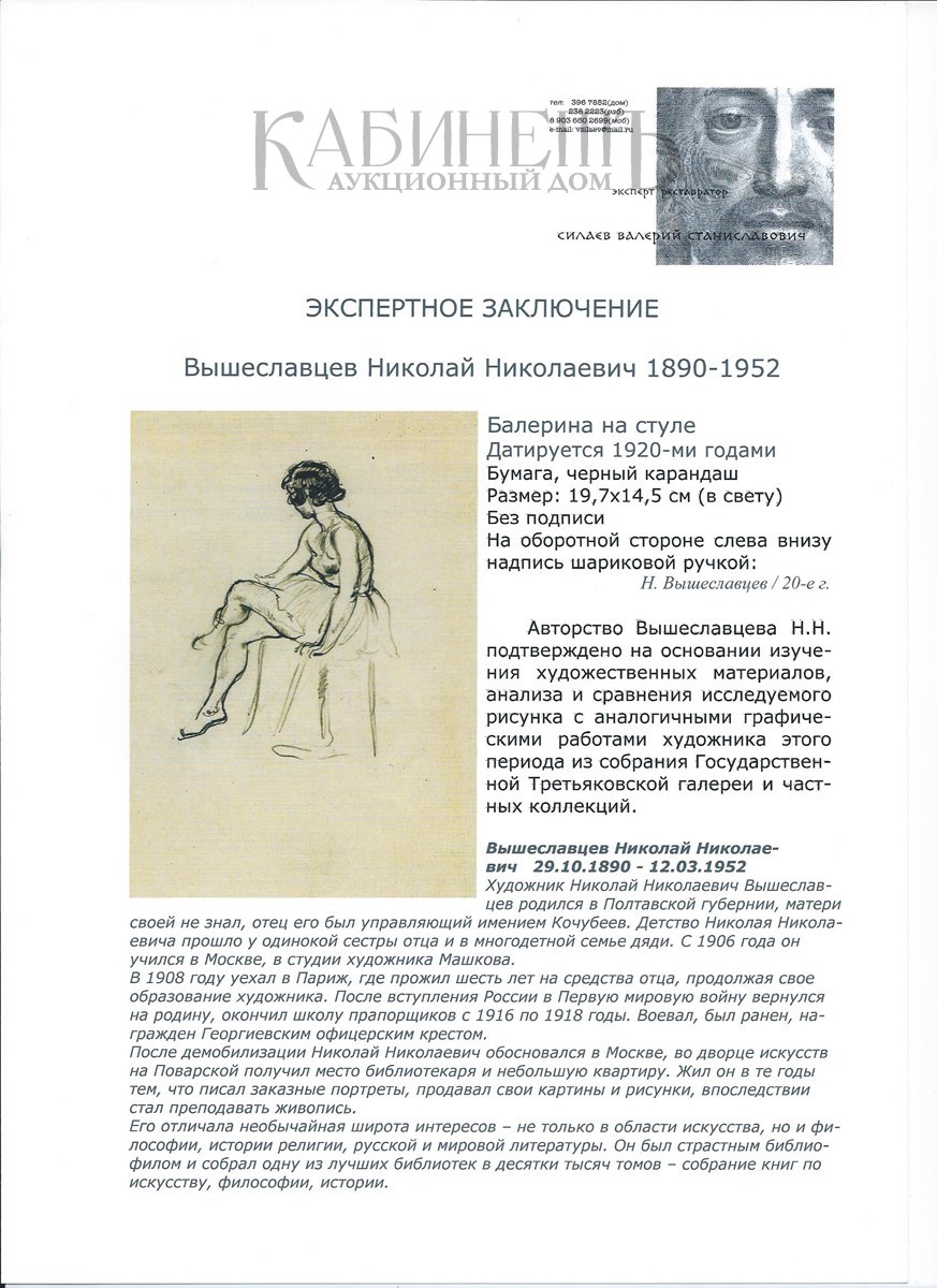 На обороте слева внизу надпись: «Н. Вышеславцев / 20-е г.»