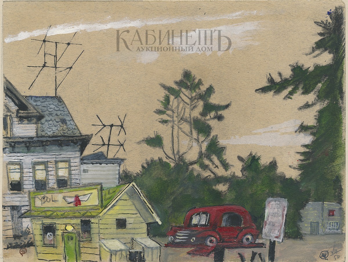 На обороте авторская подпись, дата и названия места: «1950», «Sea Cliff»
