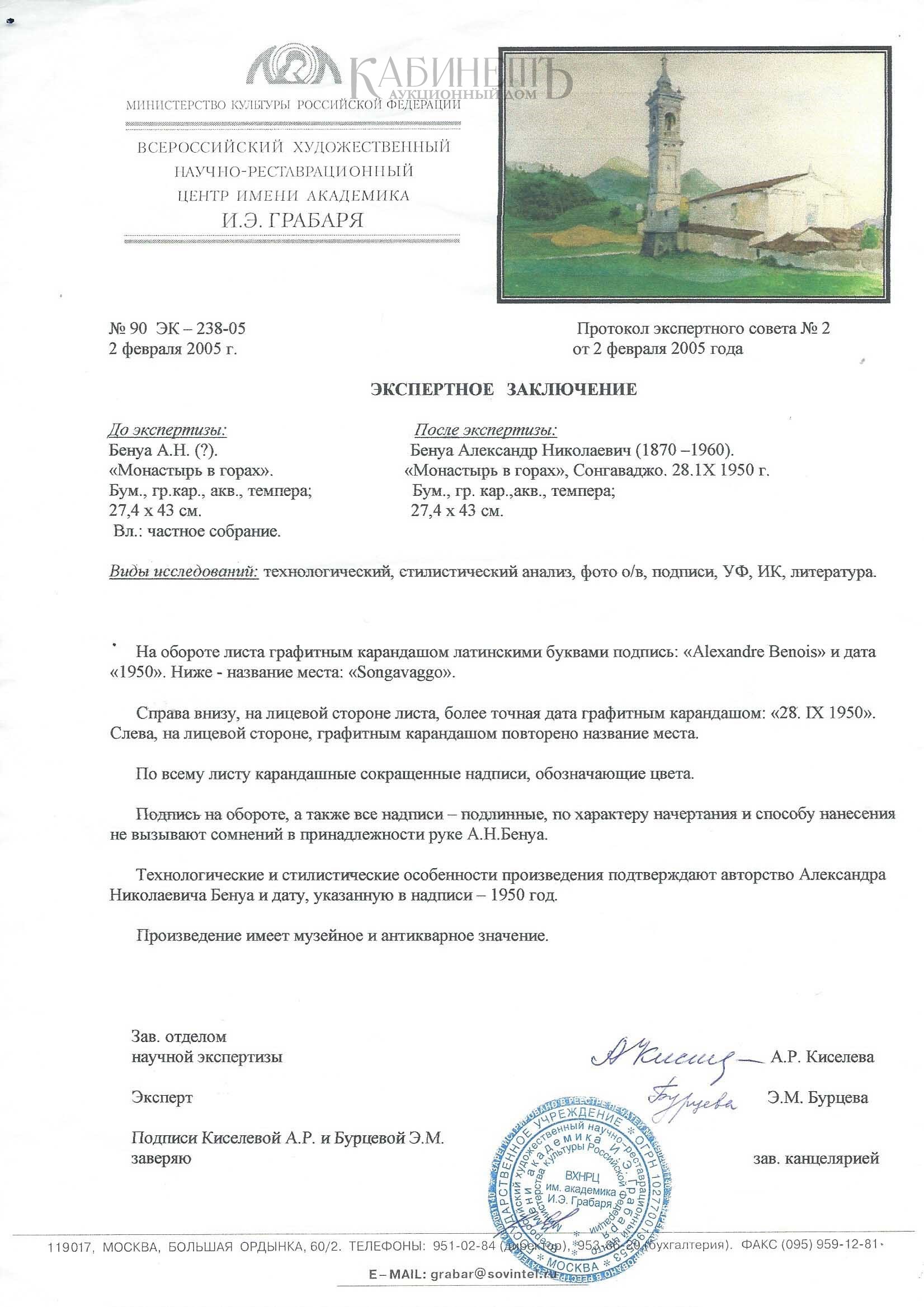 Экспертное заключение ВХНРЦ им. И.Э. Грабаря от 02.02.2005 г.