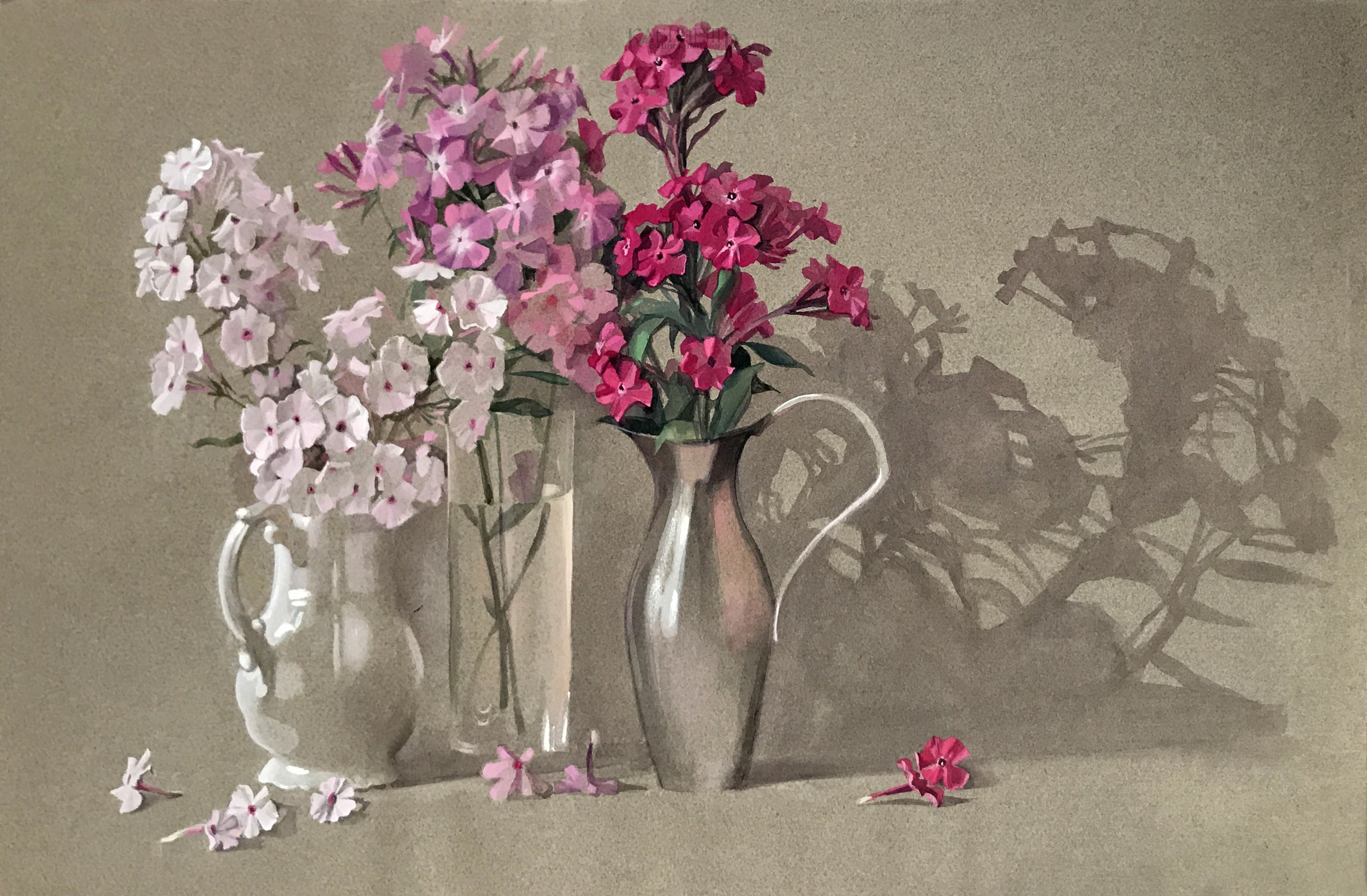 Цветы в трех вазах