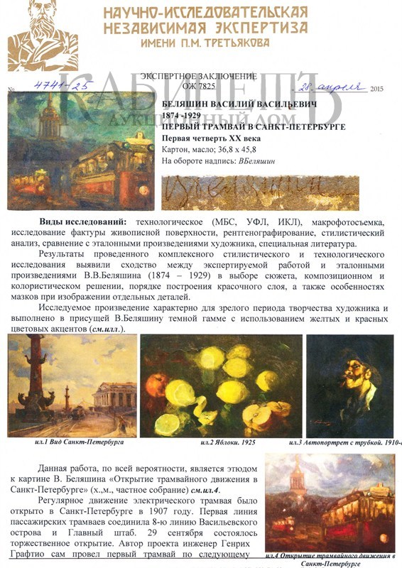 Экспертное заключение НИНЭ им. П.М. Третьякова от 28.04.2015 г.