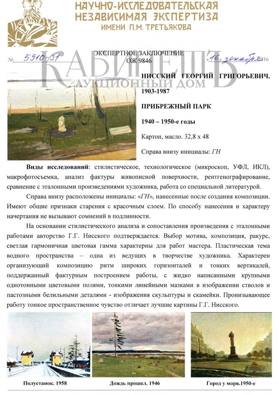 Экспертное заключение НИНЭ им. П.М, Третьякова от 16.12.2016 г.