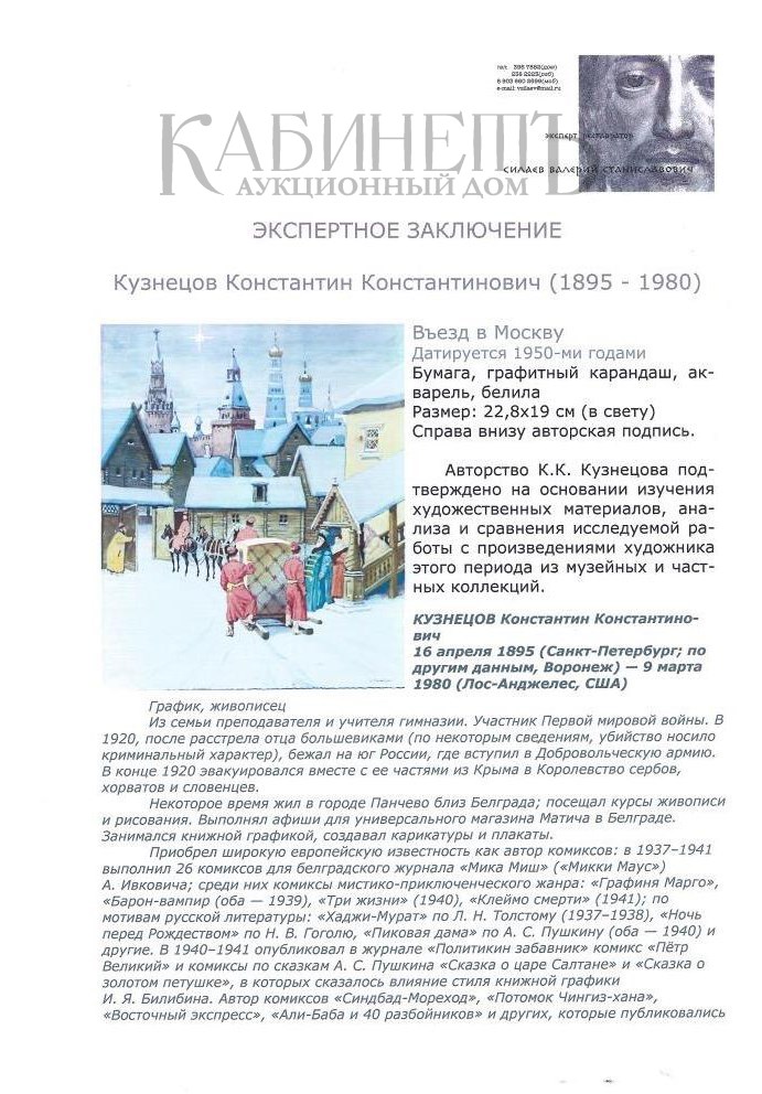 Кузнецов Константин Константинович (1895–1980) – живописец и график, иллюстратор, карикатурист, плакатист. Один из основателей жанра комикса в Югославии. Участник Первой мировой войны и Гражданской войны. В 1920 г. эмигрировал в Югославию. С 1944 г. жил в Австрии, с 1950 г. – в США.