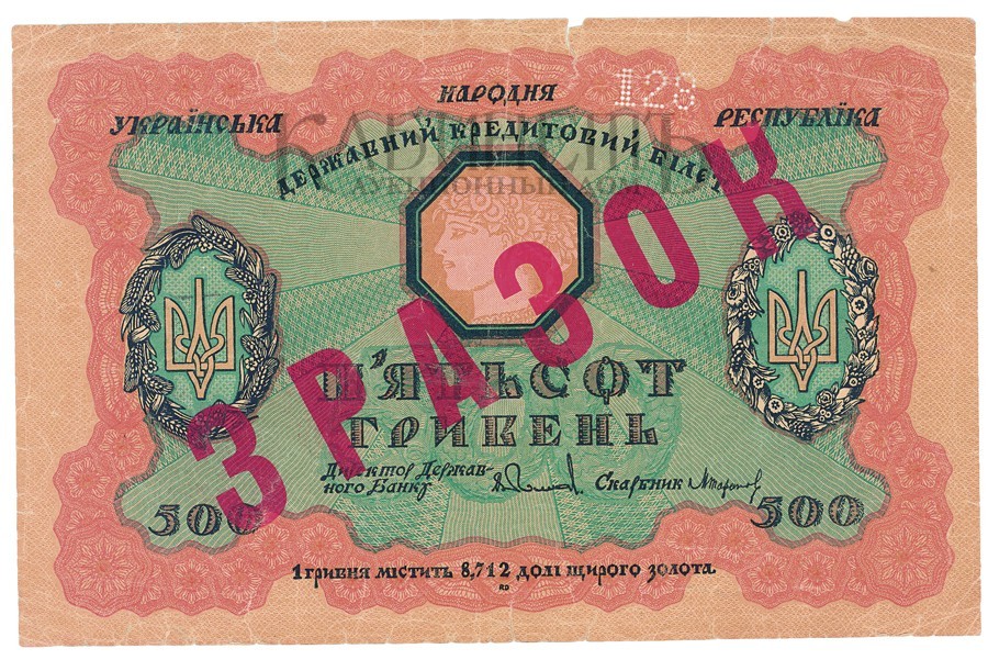 Образец Государственного кредитного билета. 500 гривен.