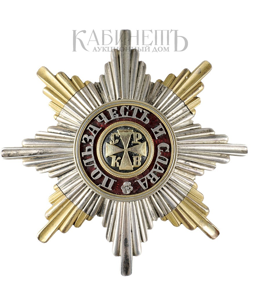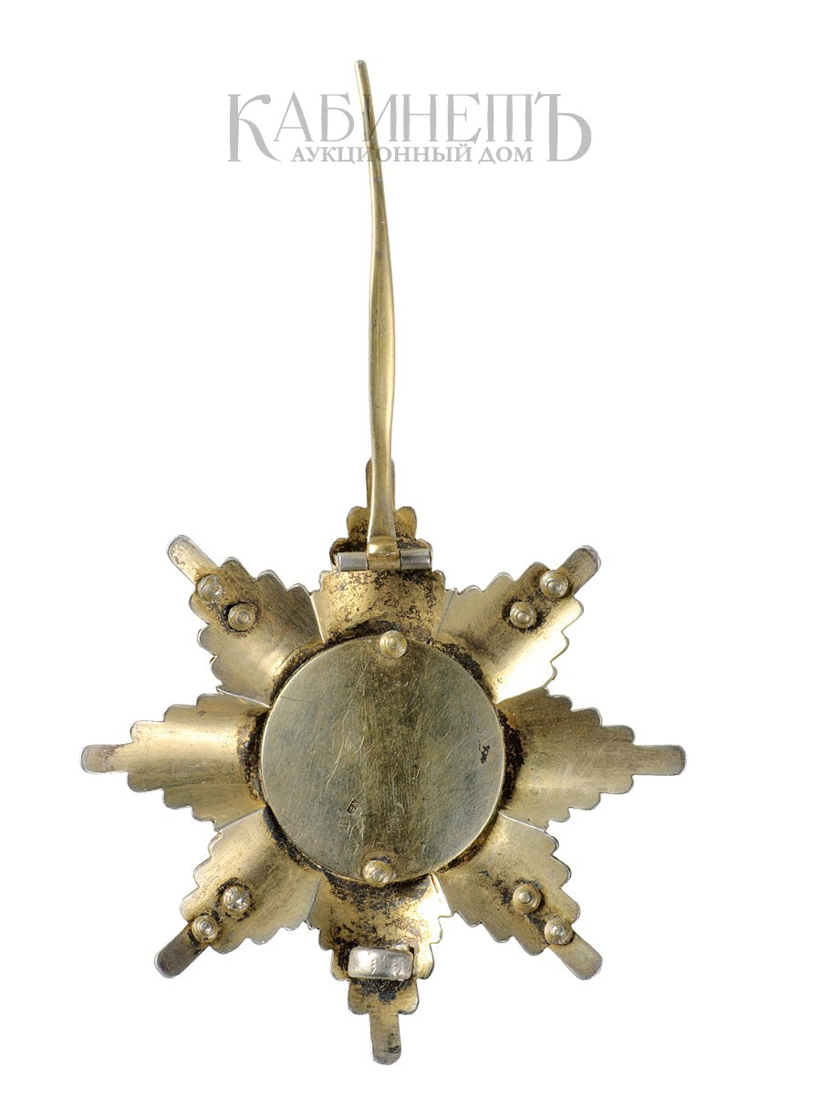 Клейма: на оборотной стороне звезды – пробирное Санкт-Петербургской окружной пробирной палаты «84», герб Санкт-Петербурга, именное клеймо «NP».