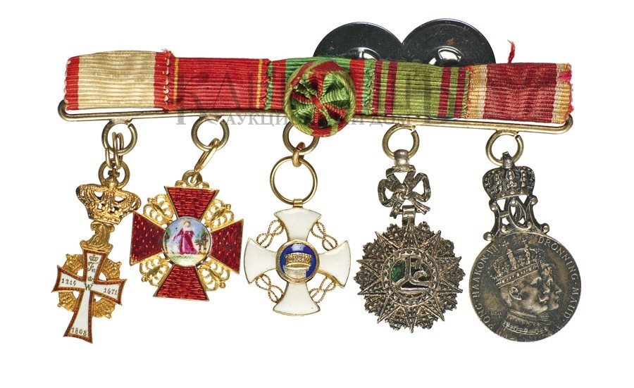 Фрачная колодка на 5 награждений на оригинальной ленте.