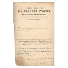 Грамота подписана Обер-Церемониймейстером Капитула Императорских и Царских Орденов Князем Долгоруким. Печать утрачена. Кромки грамоты обрезаны. Грамота заламинирована.