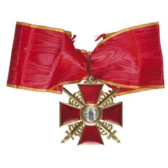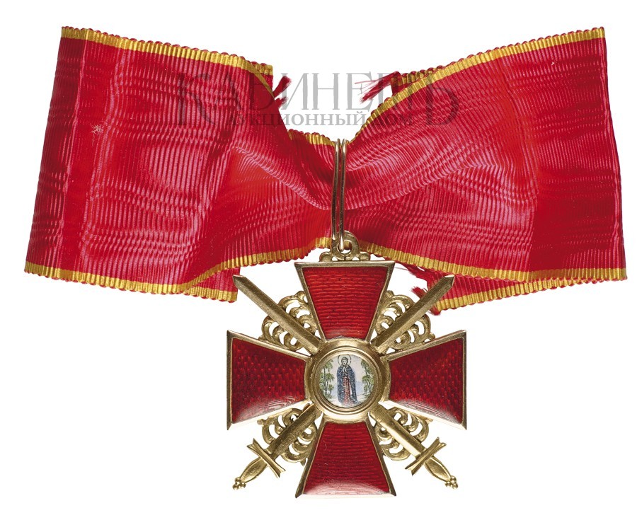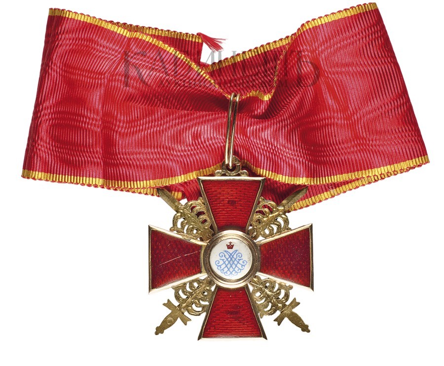 Клейма: на оборотной стороне на ушке - пробирное «56», женская головка, повернутая направо; на верхнем луче под эмалью именник «ИЛ», на нижнем - развернутый именник фирма«Эдуард».