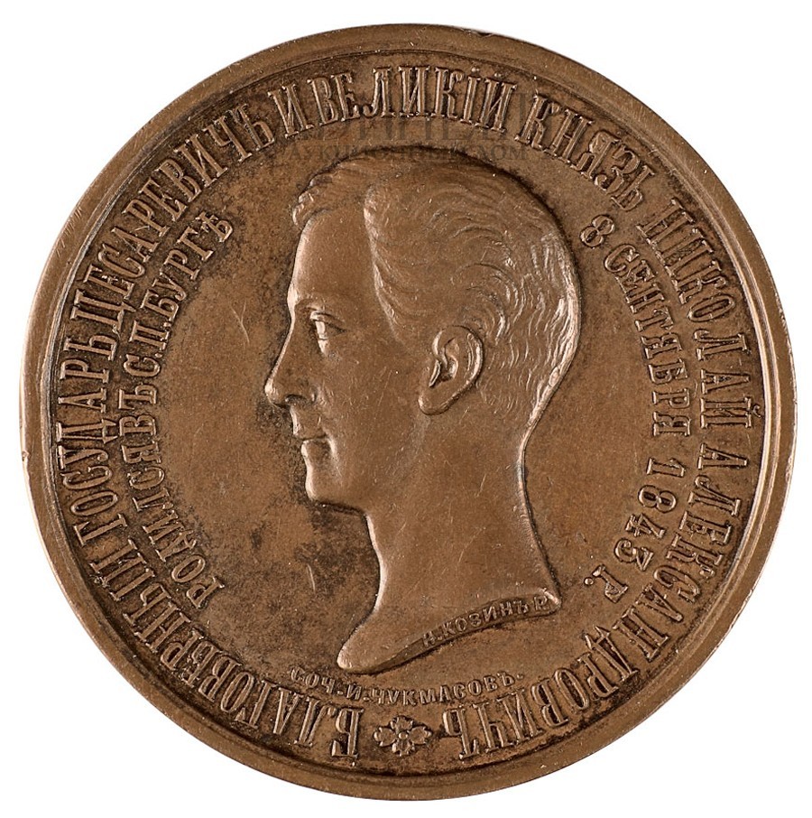 Гравер Н. Козин,Санкт-Петербургский монетный двор. 1865 г.Диаметр 36 мм. Вес 27,57 гр. Бронза.Дьяков 732.1; Смирнов 671.