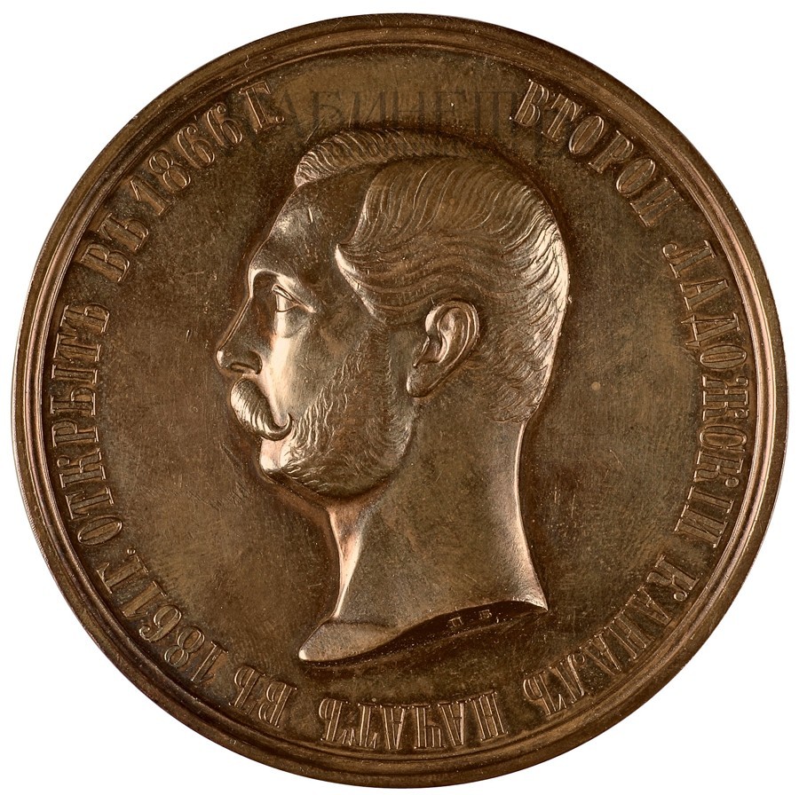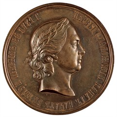 Гравер П. Брусницын, Санкт-Петербургский монетный двор. 1866г.Диаметр 68 мм. Вес 190,08 гр. Бронза.Дьяков 745.1; Смирнов 680.Состояние превосходное.