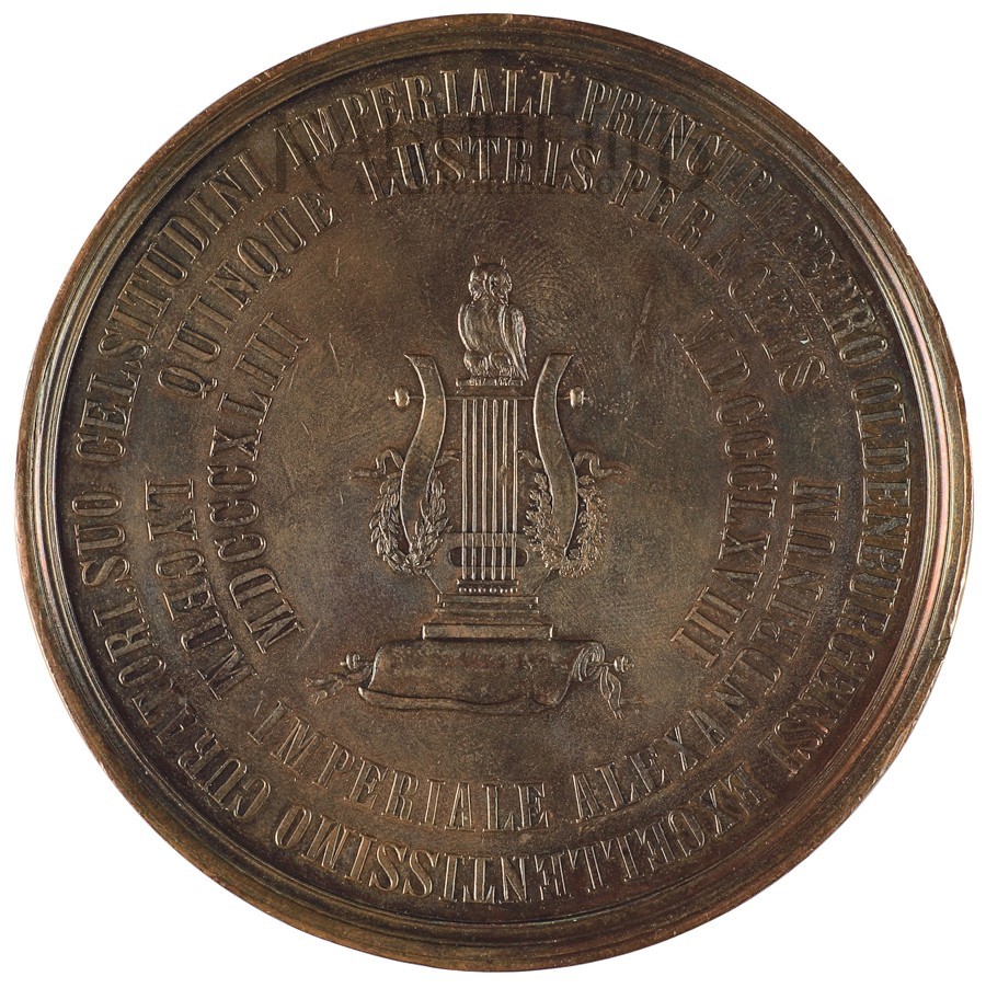 Гравер В. Никонов, Санкт-Петербургский монетный двор. 1868 г.Диаметр 80 мм. Вес 218.19 гр. Бронза.Дьяков 755.1; Смирнов 689.16