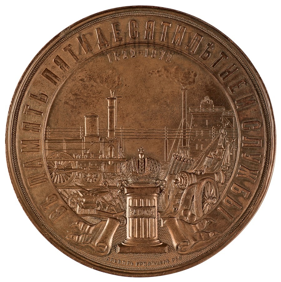 Медаль в память 50-летней службы Константина Владимировича Чевкина.