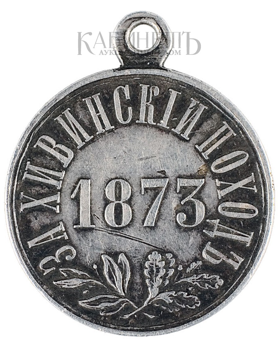 Учреждена 22 июля 1873 г. Медалью награждали: всех генералов, офицеров, строевых и нестроевых нижних чинов, священников, медиков, чиновников военного и гражданского ведомств, волонтеров и джигитов, находившихся в составе войск Туркестанского, Оренбургского, Мангышлакского, Красноводского отрядов и Аральской флотилии в 1873 г. и принимавших участие в Хивинском походе. Было отчеканено 14 950 медалей.