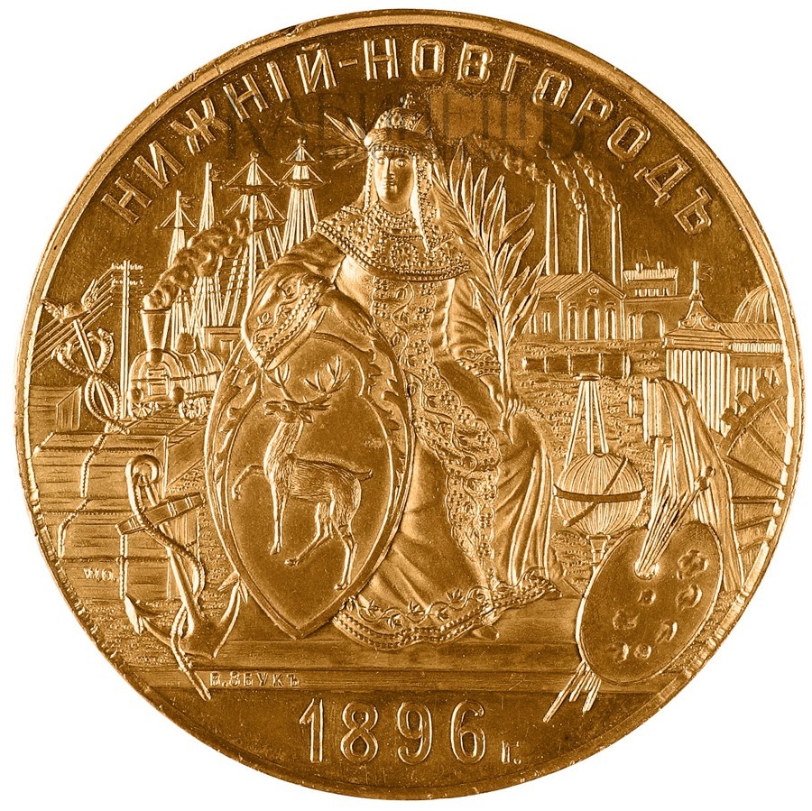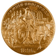 Гравер В. Островский. Фабрика В. Збука.Диаметр 53 мм. Вес 74,83 гр. Бронза, золочение. Дьяков 1219.4.
