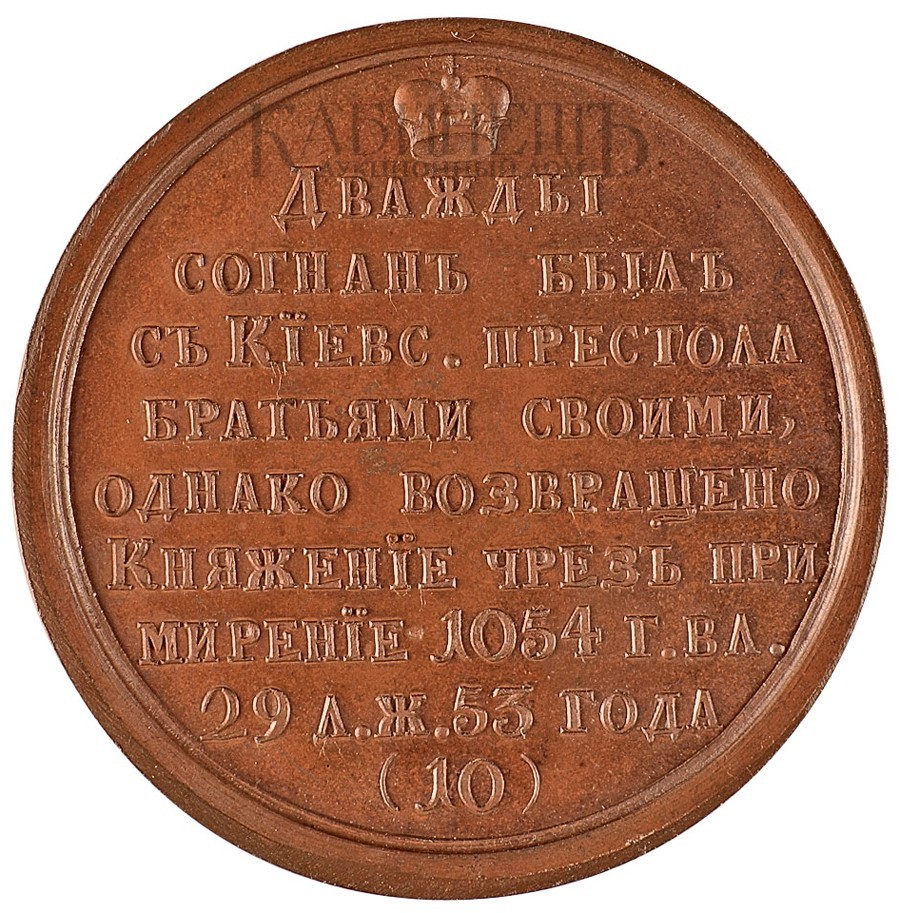 «Великий князь Изяслав I, Ярославович. 1054-1073 гг.». Гравер Ф. В. Гасс. Дьяков 1613; Смирнов 10.