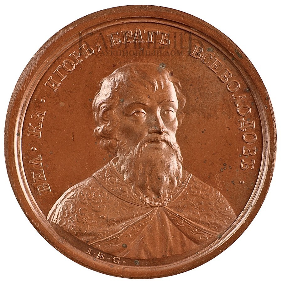 «Великий князь Игорь II, Ярославович. 1093 г.». Гравер И. Б. Гасс. Дьяков 1615 А; Смирнов 12b.