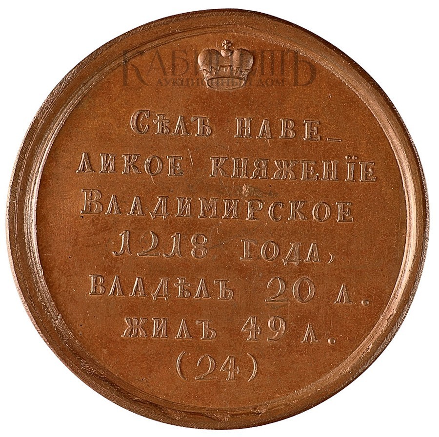 «Великий князь Юрий II, Всеволодович. 1218-1238 гг.». Гравер Т. Иванов. Дьяков 1627; Смирнов 24.