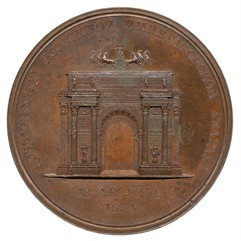 Граверы: Г. Губе, А. Лялин и А. Клепиков. Санкт-Петербургский монетный двор. 1834 г. Диаметр 65 мм. Вес 122,37 г. Бронза. Дьяков 509.1.
