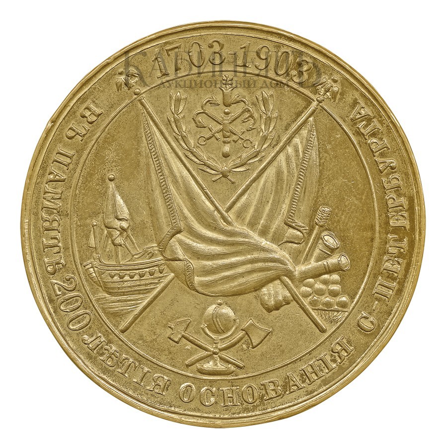 Гравер В. Андреев.Санкт-Петербургский монетный двор. 1903 г.Диаметр 49,8 мм. Вес 59,76 г. Бронза, позолота.