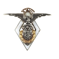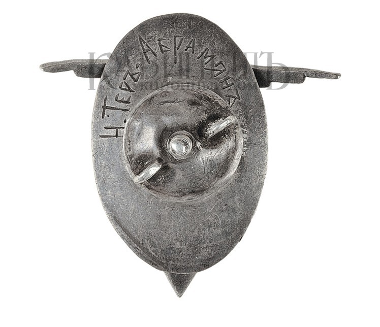 Российская Империя. Частная мастерская. Начало XX в.Размер 34,5 х 38,5 мм. Вес 11,77 г.Серебро, золото, эмаль.На прижимной шайбе гравированная надпись: «Н. Теръ-Абрамянъ».