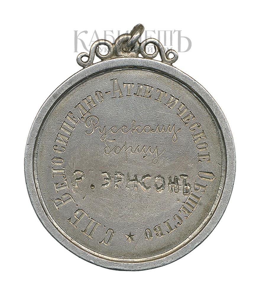 Жетон Санкт-Петербургского Велосипедно-Атлетического Общества на имя борца Р. Эрнсона