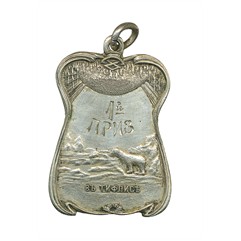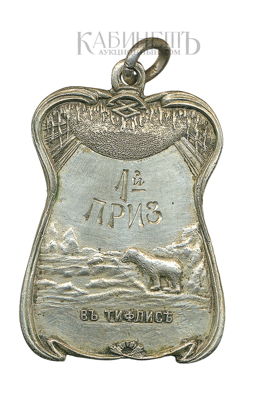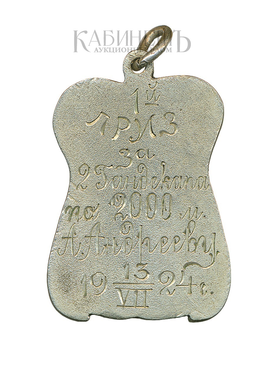 Клеймо: на кольце пробирное 84. На оборотной стороне выгравирована надпись: «1-й / приз / за / 2 Гандекапа / по 2000 м./ А. Анлрееву / 13.VII.1924 г.».