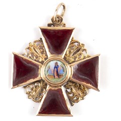 Нуждается в реставрации. Утрачена эмаль на лучах с оборотной стороны, повреждения медальона с оборотной стороны; повреждения эмали на лучах и медальоне с лицевой стороны. Нуждается в пайке решеток.