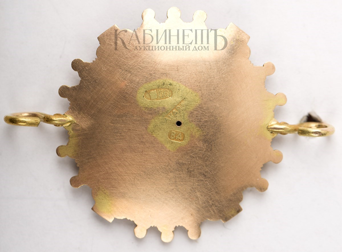 Клейма: на оборотной стороне – пробирное «56» с женской головкой в кокошнике, повернутой вправо, и буквой «альфа», именник «ВД», развернутое клеймо «Эдуард».