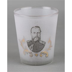 Российская Империя, частный завод 1880-е гг. Высота: 8,4 см Диаметр: 8 см Стекло, матовое стекло, роспись.