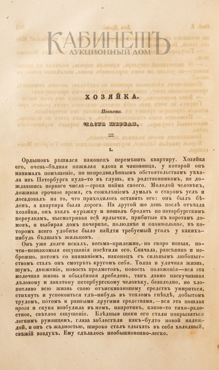 Первая публикация ранней повести Ф.М. Достоевского «Хозяйка» с. 396-424 (Ч. 1); 381-414 (Ч. 2).