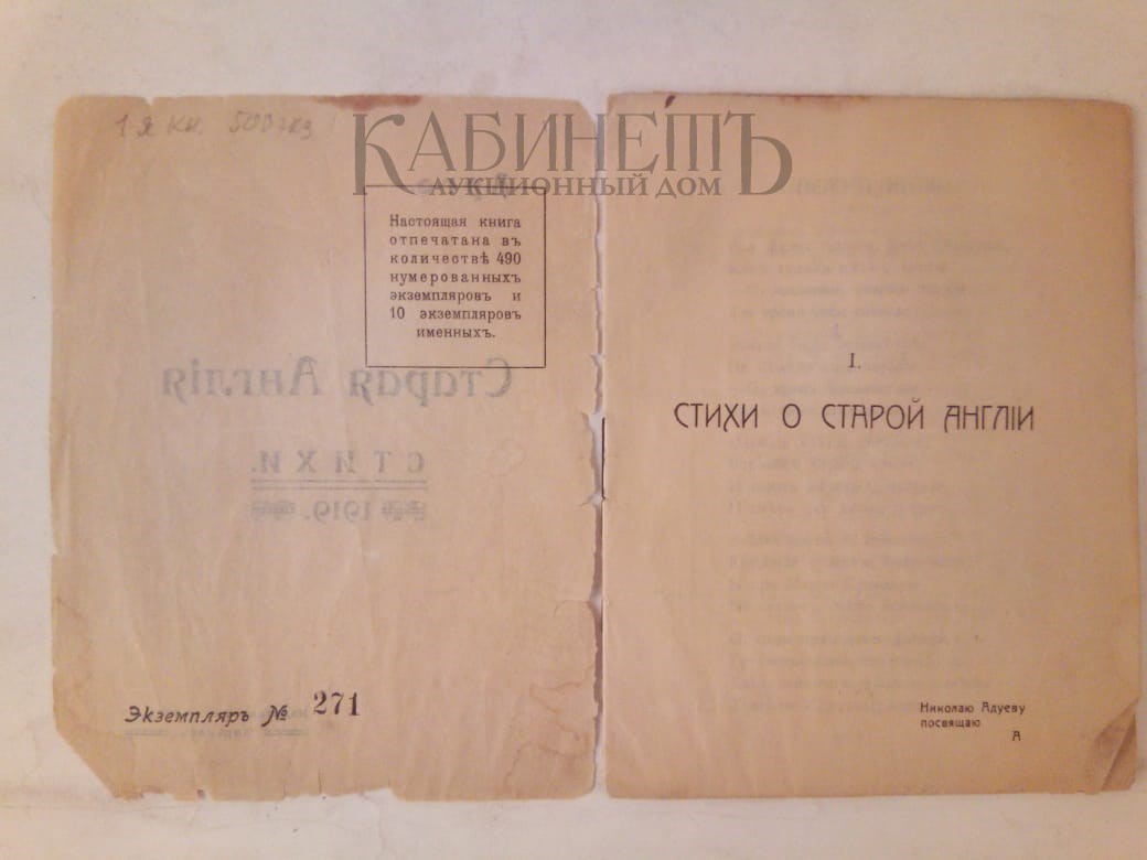 Настоящая книга отпечатана в количестве 490 нумерованных экземпляров и 10 именных экземпляров. Экземпляр № 271.
