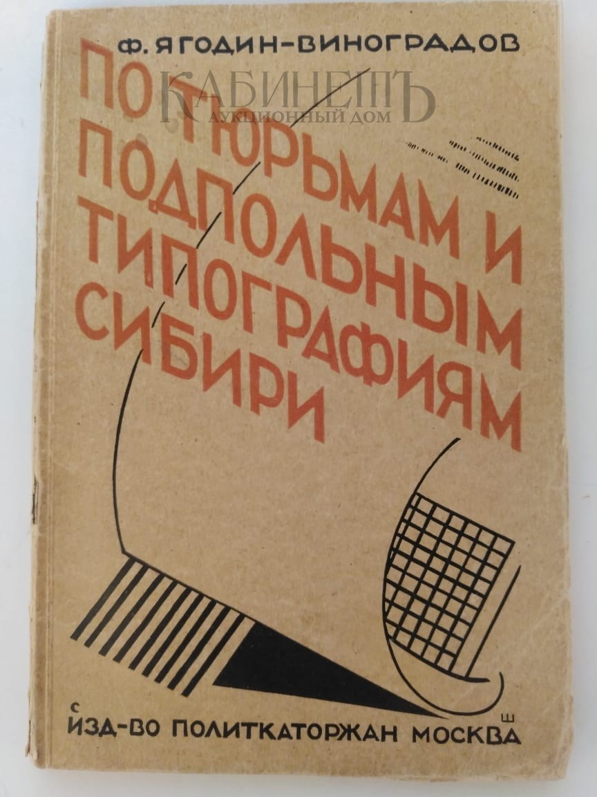 [Конструктивистская обложка Сара Шор]. Ягодин-Виноградов, Ф. По тюрьмам и подпольным типографиям Сибири. М.: Издательство Всесоюзного Общества Политических Каторжан и Ссыльно-Поселенцев, 1928.