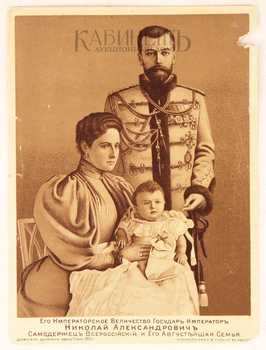 2. Его Императорское Величество Государь Император Николай Александрович Самодержец Всероссийский и его Августейшая Семья. 1900-е гг. 16 х 11 см. Бумага, хромолитография, утрата незначительного фрагмента на поле.