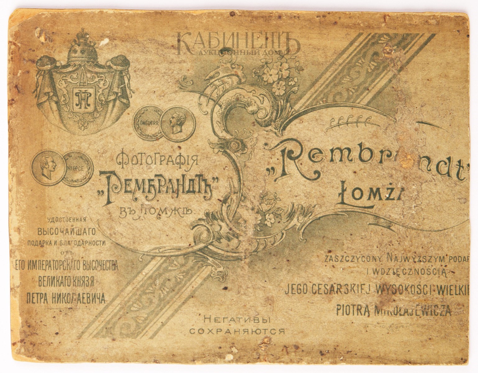 Фотография наклеена на фирменное паспарту фотоателье «Рембрандт»Паспарту обрезано