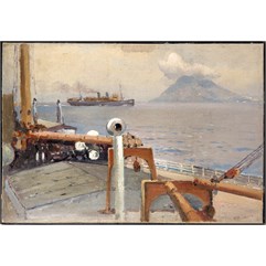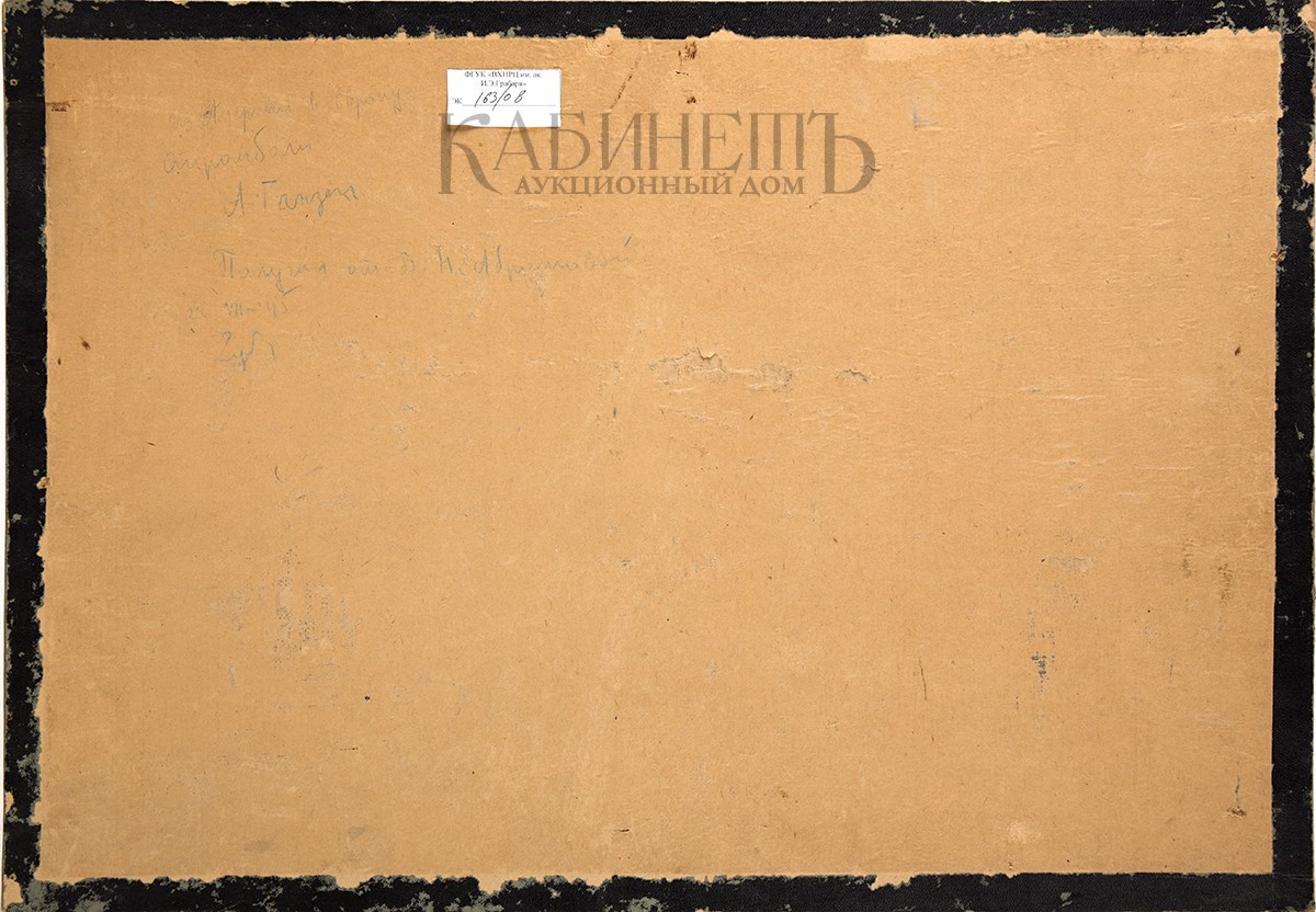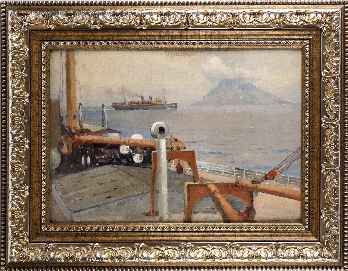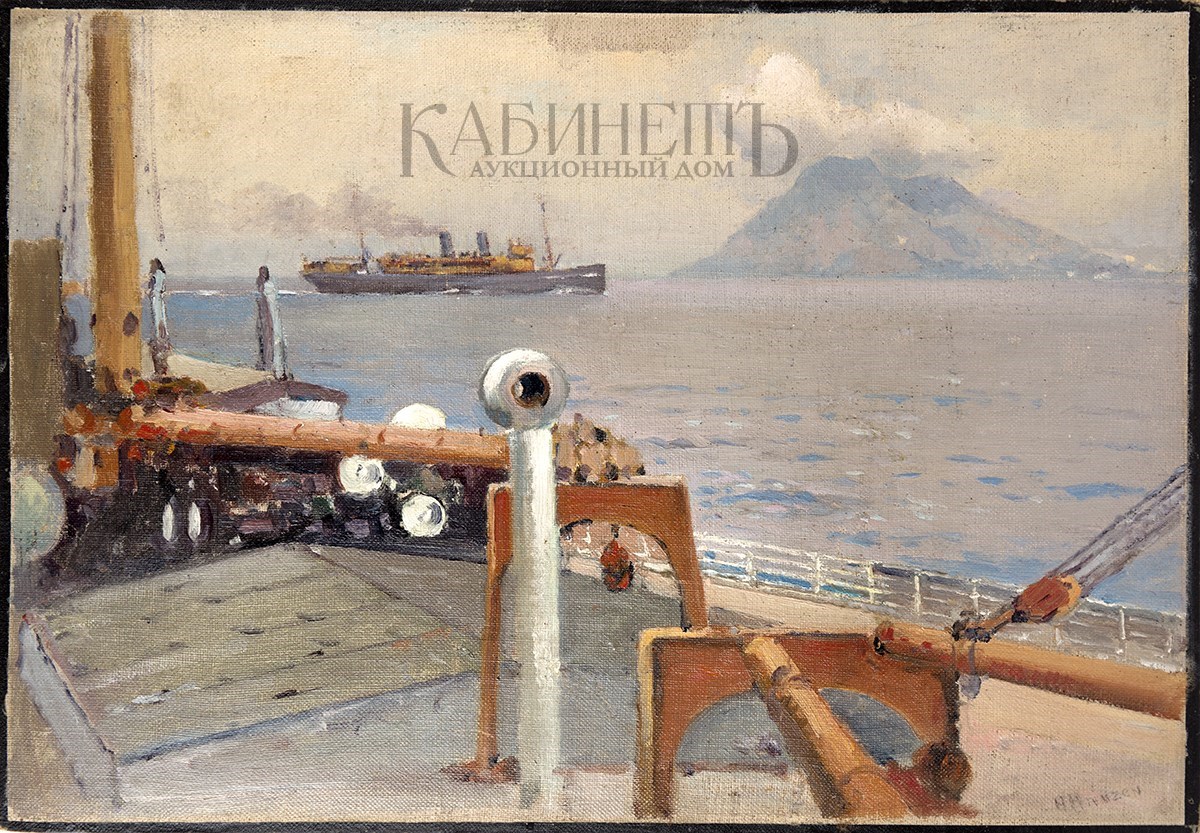 Слева внизу подпись: «A.Hanzen». На оборотной стороне слева вверху надпись: «Из Америки в Европу/ Стромболи/ А Ганзен/ Получил от В.Н. Абрамцевой/ 21.VII. 45» и подпись.