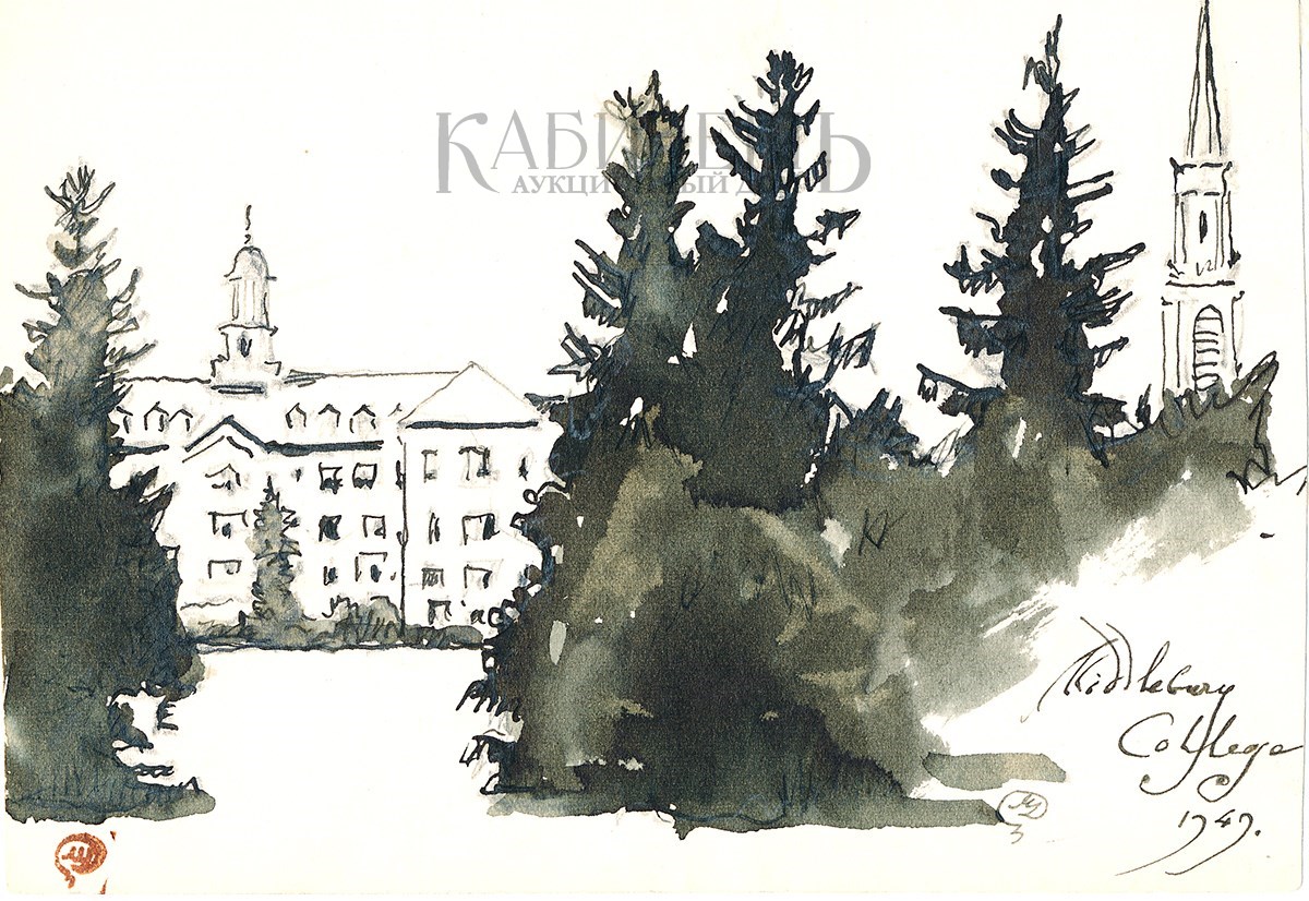 Слева внизу авторский штампСправа внизу надпись: «MiddleberyCollege 1949» и авторская подпись