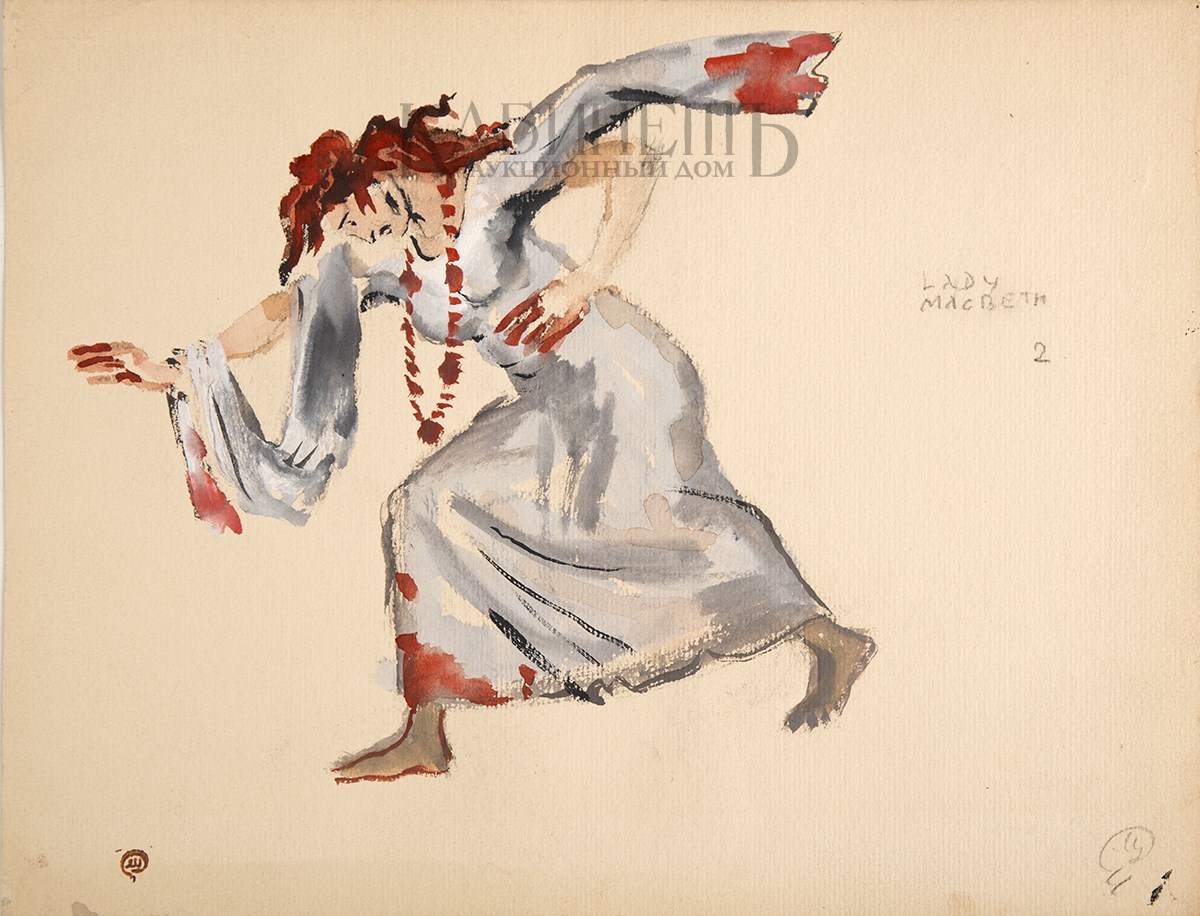 Эскиз костюма Леди Макбет к балету «Видения» (по произведениям У. Шекспира) в постановке Монреальского балета Рут Сорель.