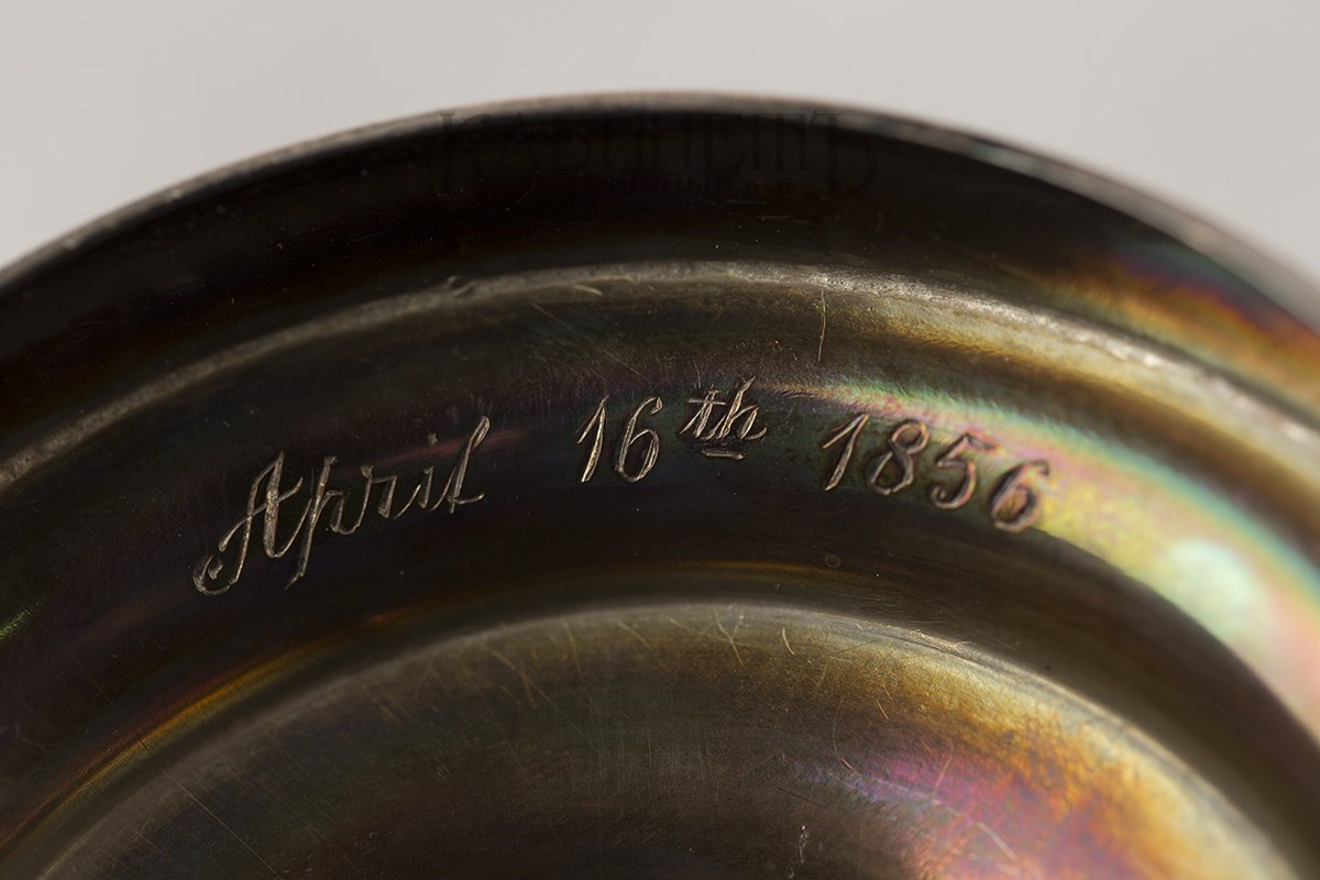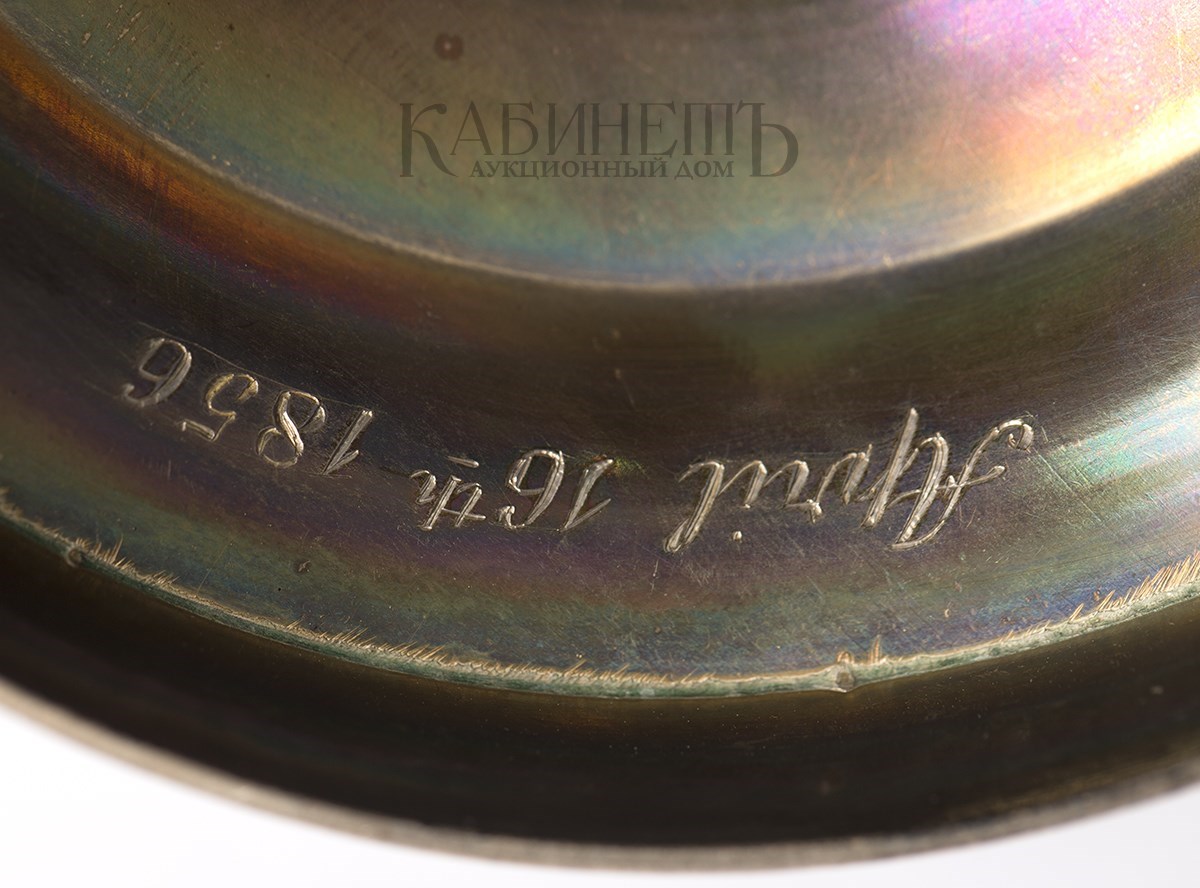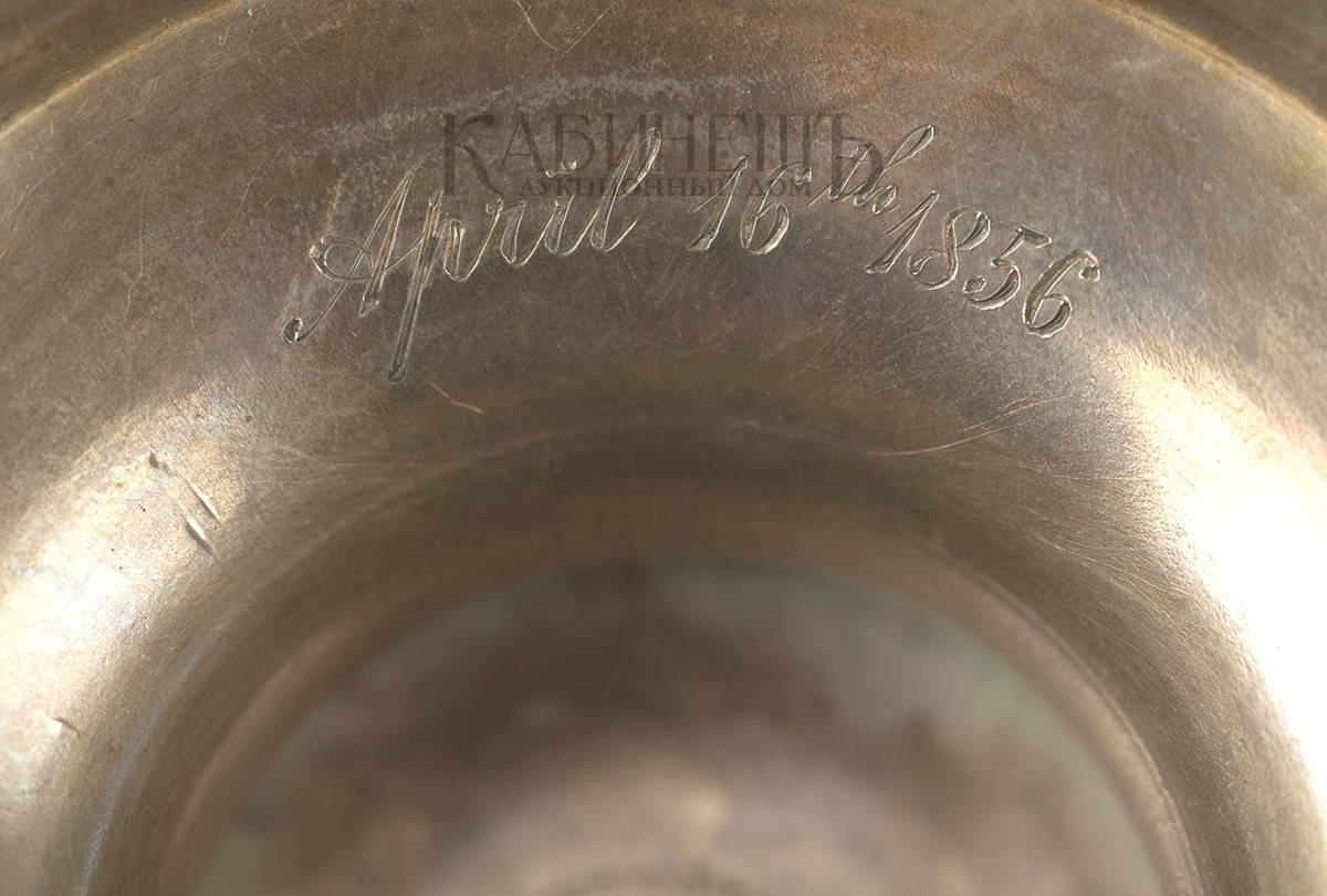 На дне каждого предмета выгравирована надпись: «April 16th 1856», на боках – вензель.