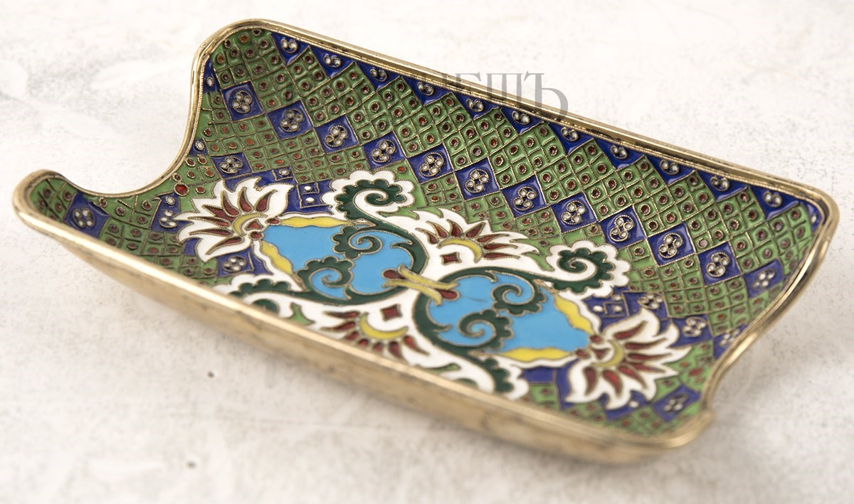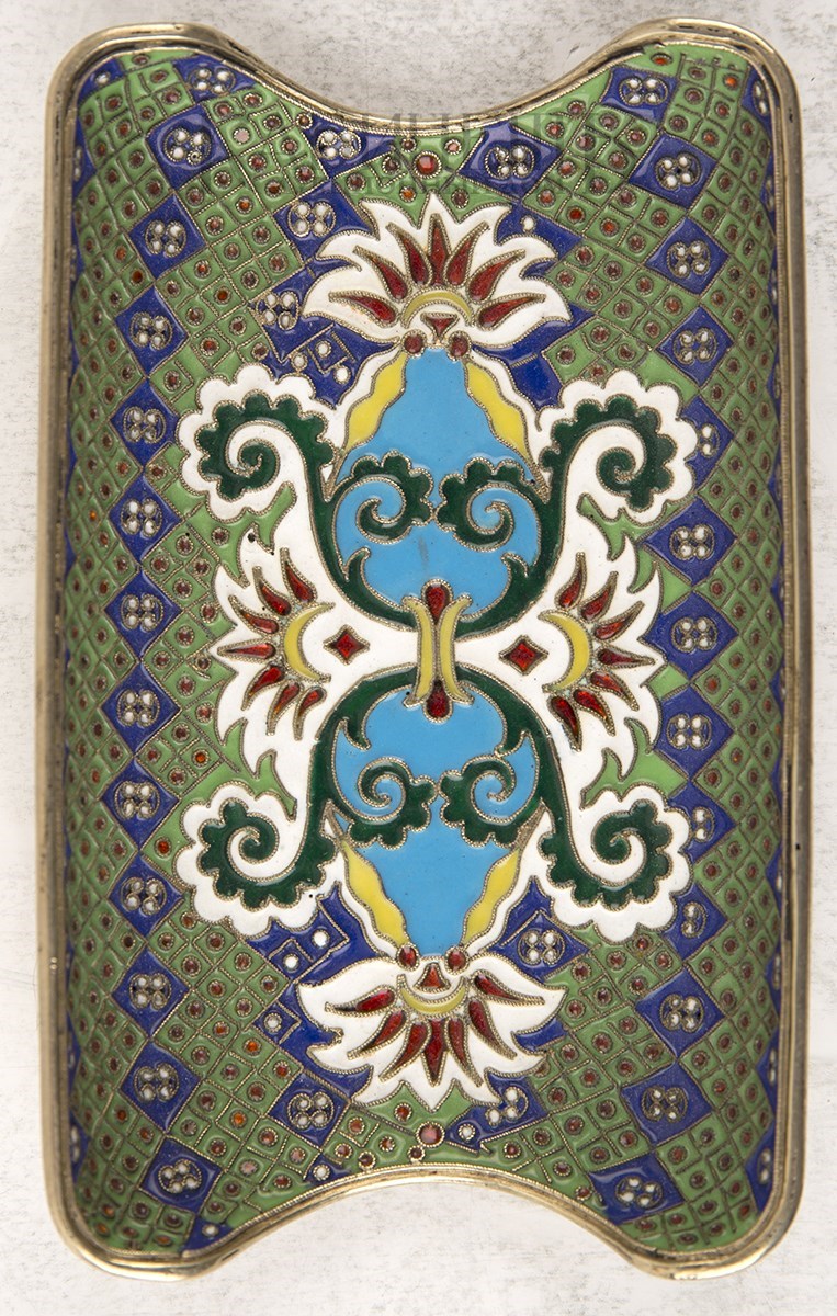 Москва, фирма И. Хлебникова1880-е гг.Серебро, золочение, перегородчатая эмальРазмер 7х11,7 смВес 91,85 г