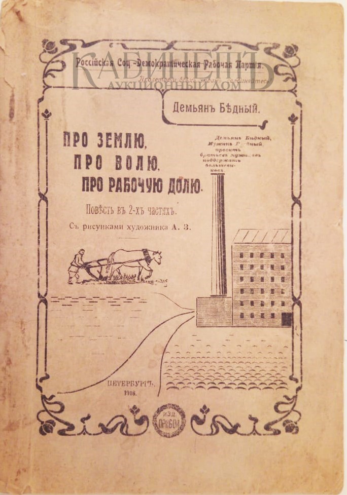 128 с., ил. 22 х 15 см. В издательской иллюстрированной обложке. Утрата незначительных фрагментов корешка, потертости. Утрата фрагмента титульного листа по верхнему полю. Реставрация: обратная сторона титульного листа по верхнему полю подклеена бумагой и картоном. На титульном листе автограф автора: «Глубокоуважаемому Семену Афанасьевичу Венгерову от автора. Демьян Бедный». Встречаются небольшие надрывы страниц. Блок чистый.