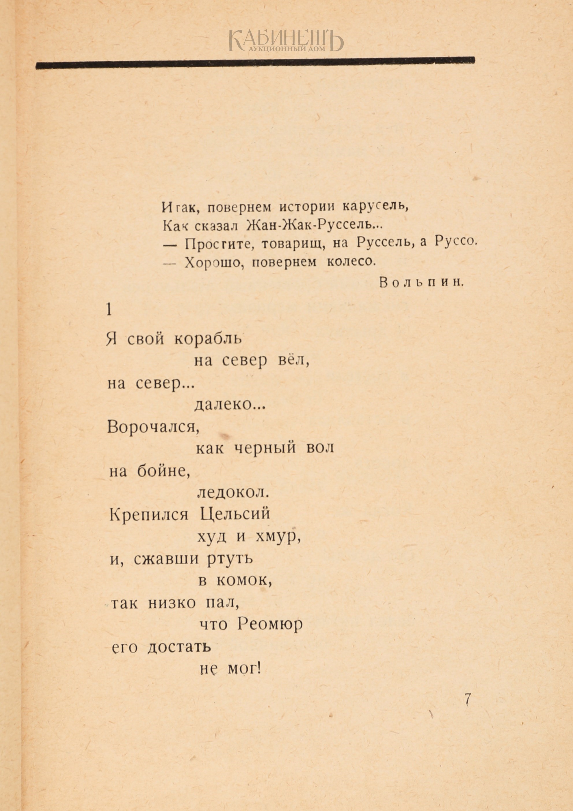Кирсанов Семён Исаакович (1906–1972) – советский поэт. Писал стихи в стиле В. Маяковского. Экспериментальный характер стихов Кирсанова вызывал резкие нападки и обвинения в «формализме» в тридцатые годы, включая данное издание, и больше его не издавали. В конце 1940-х прекратили включать книгу в библиографии.