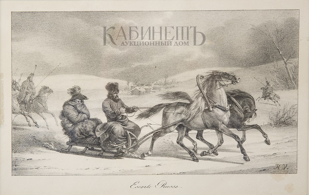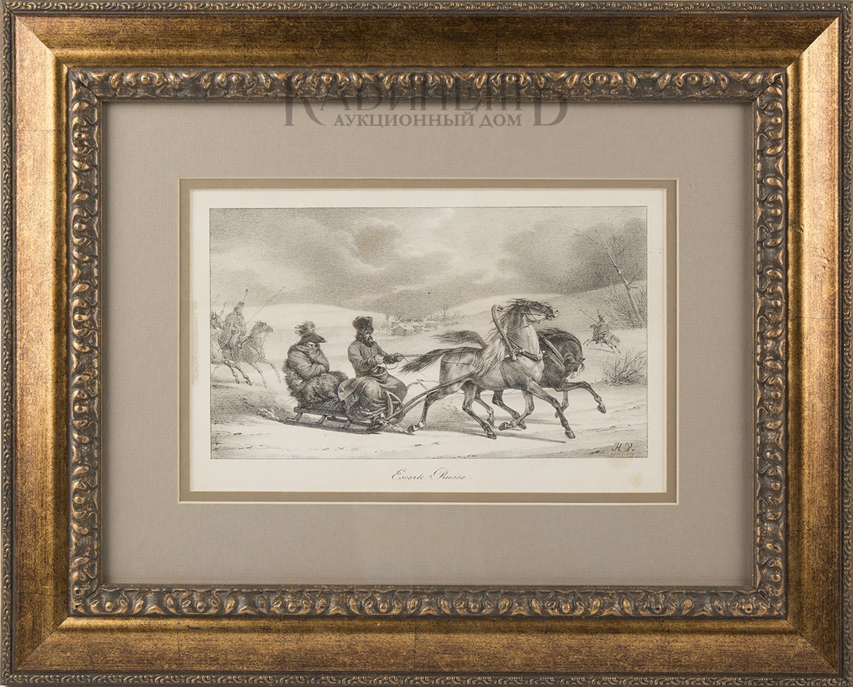 Справа внизу на изображении авторские инициалы: «H.V.». Под изображением надпись: «Escorte Russe».
