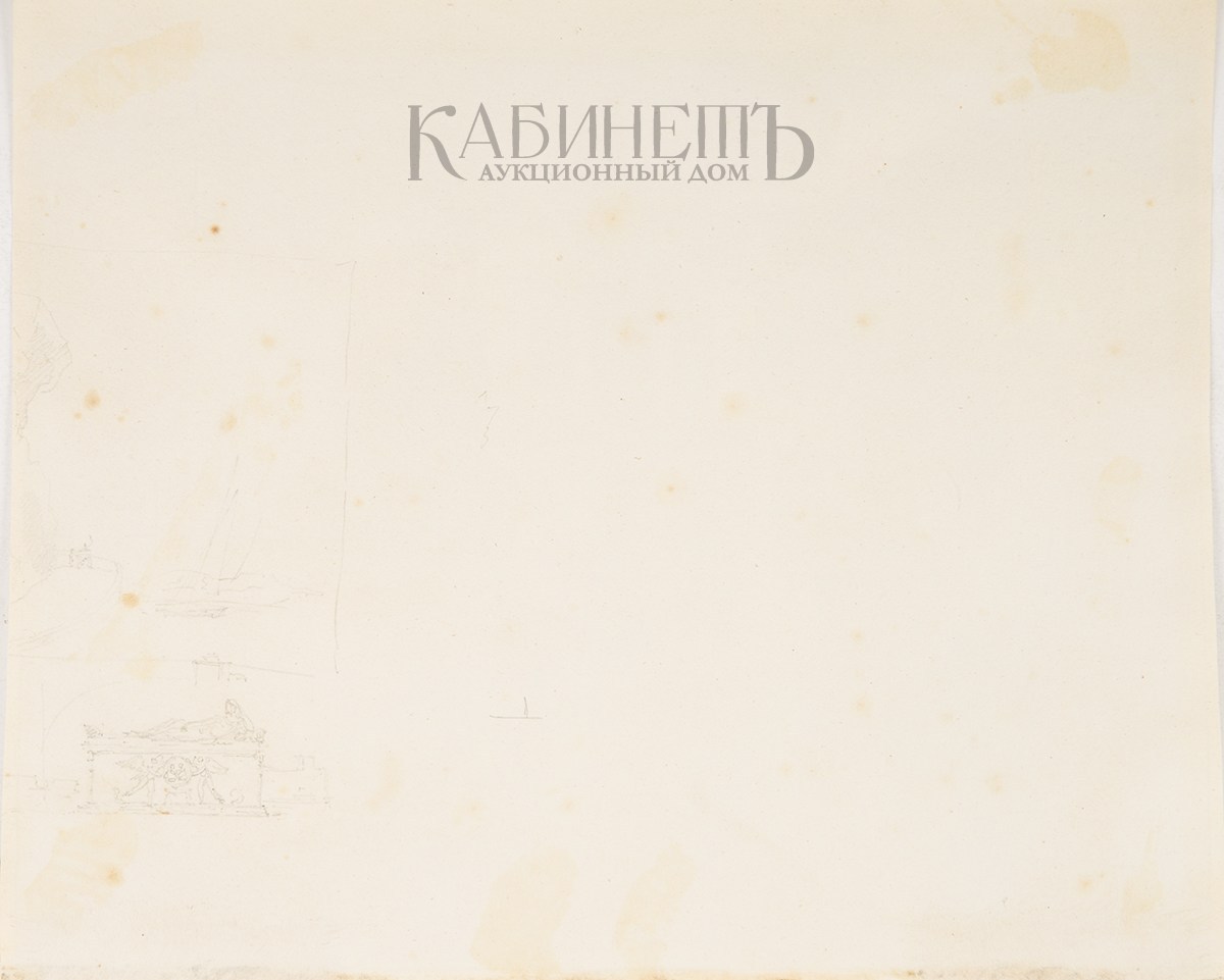 На обороте наброски графитным карандашом: «Скала у моря. Саркофаг.»