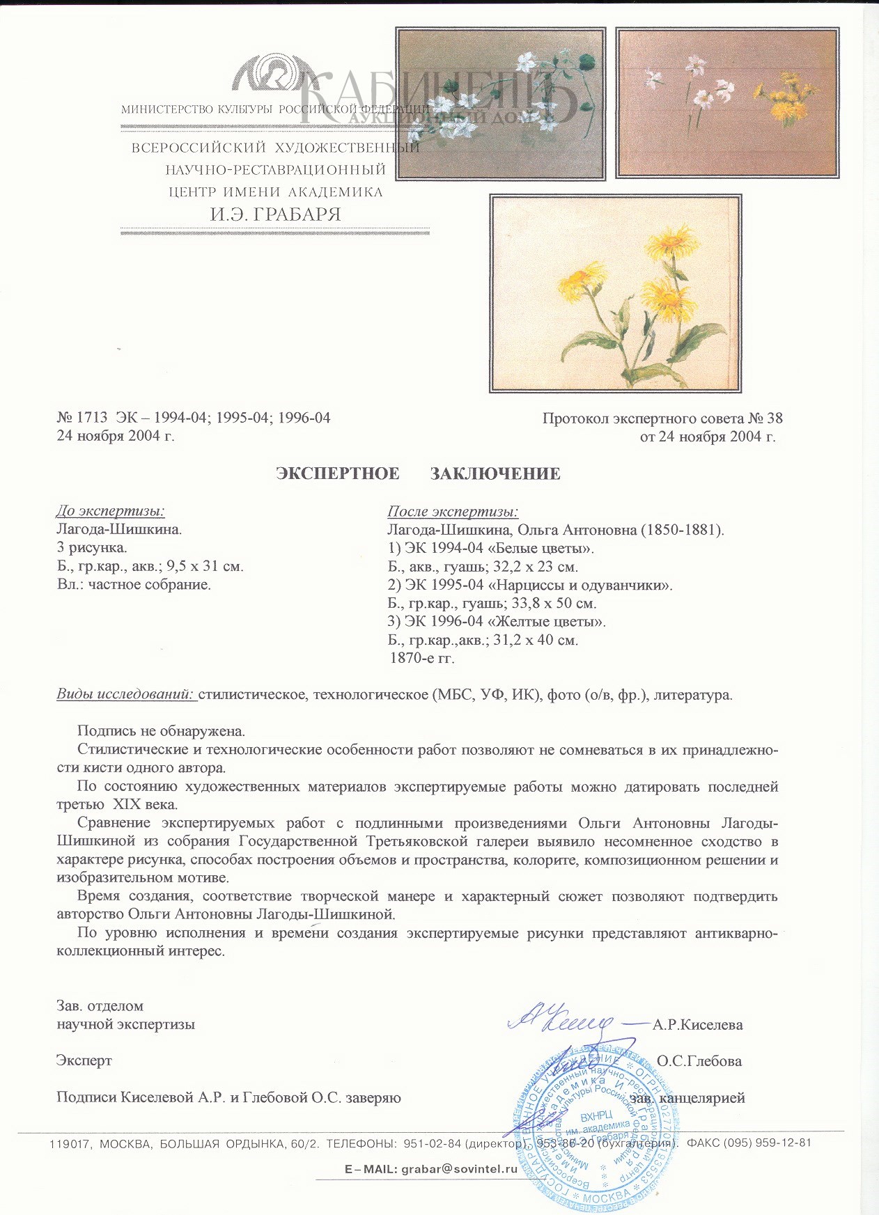 Экспертное заключение ВХНРЦ им. И.Э. Грабаря от 24.11.2004 г.