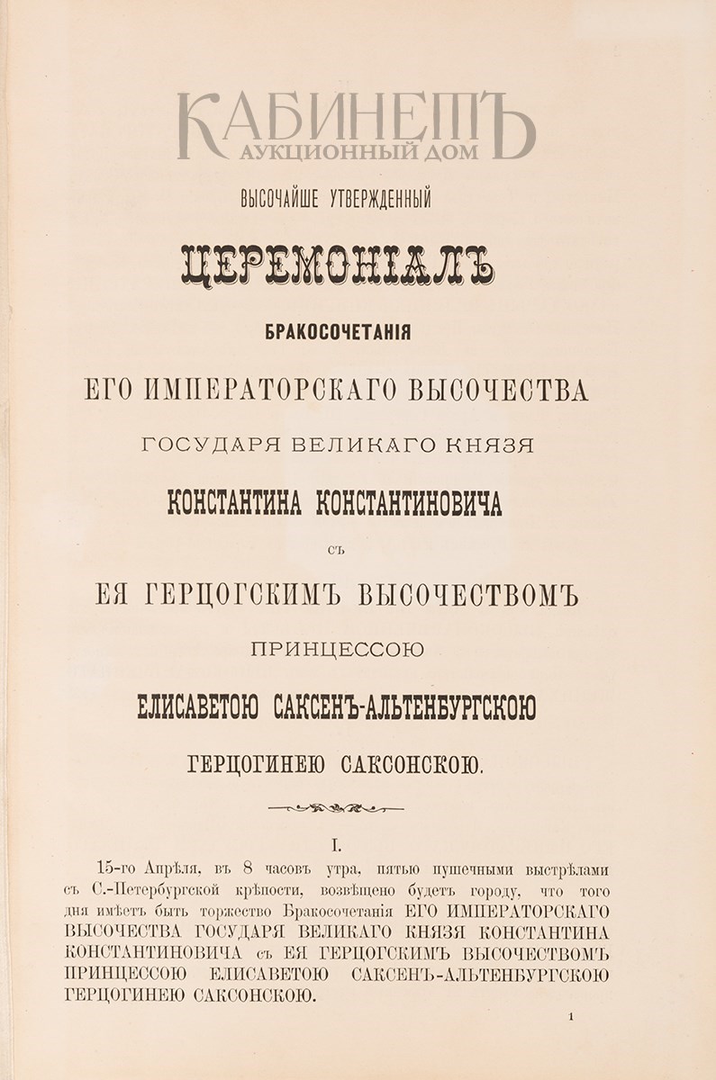 На русском и французском языках. Экземпляр в издательском коленкоровом переплете с золотым тиснением по крышкам, с ляссе. Экземпляр из библиотеки великого князя Михаила Николаевича.